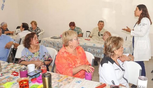 Río Bravo, Tamaulipas.-Esta mañana, la Dra. Zuleyma Pérez ofreció una plática a los miembros del programa Adulto Activo sobre la deshidratación y el golpe de calor.
