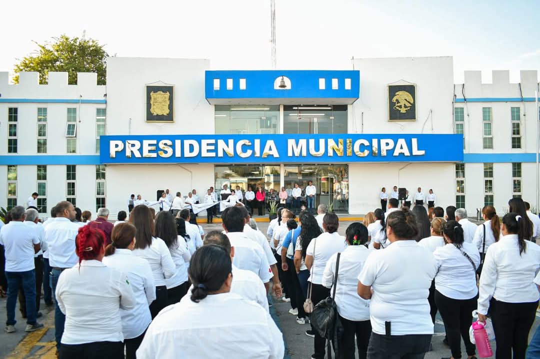 Río Bravo, Tamaulipas.-Con respeto y orgullo, autoridades municipales dieron inicio a la semana con los Honores a la Bandera en la Presidencia Municipal.