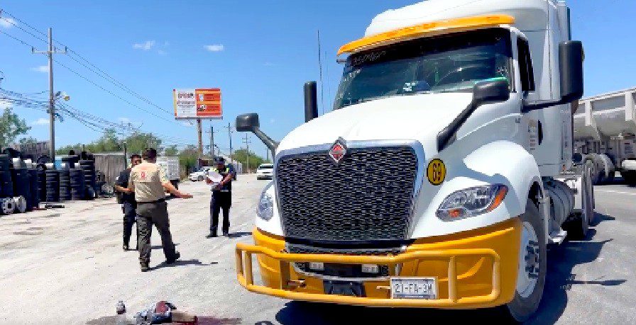 Reynosa, Tamaulipas.-Una persona se debate entre la vida y la muerte en un hospital, luego de haber sido brutalmente impactada por un tráiler en juna motocicleta en una concurrida carretera.