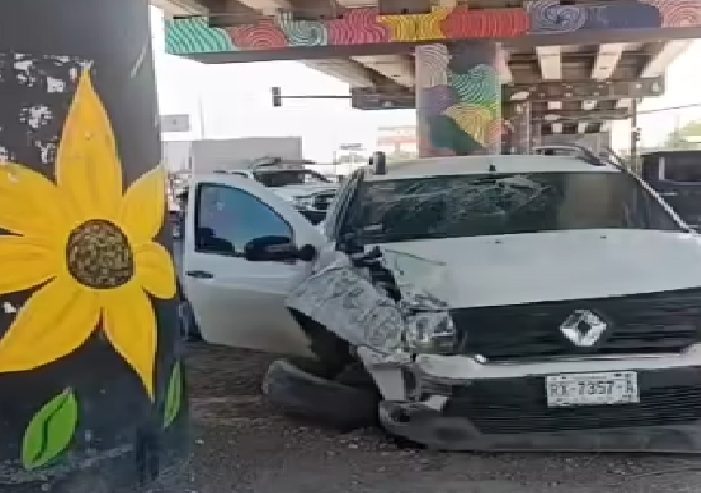 Los hechos se registraron sobre la carretera de Río Bravo a Reynosa, debajo del puente vehicular que accede a la colonia La Joya, donde una unidad quedara impactada contra un muro de concreto que soporta la estructura del puente vehicular.