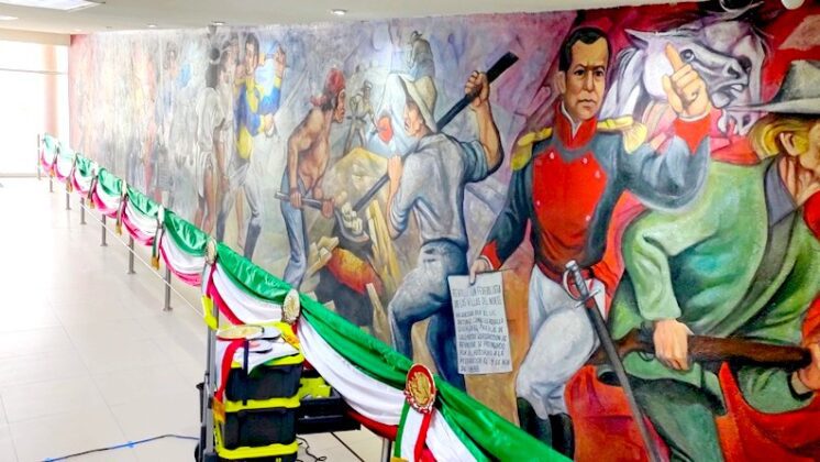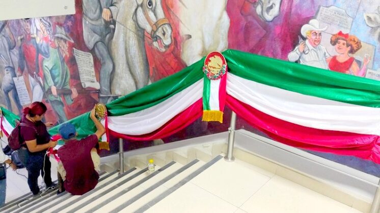 Reynosa, Tamaulipas. -Como parte de los festejos patrios y la mejora de la imagen de la Presidencia Municipal de Reynosa, se han estado realizando algunas acciones como saneamiento y pintado, así como decoración.