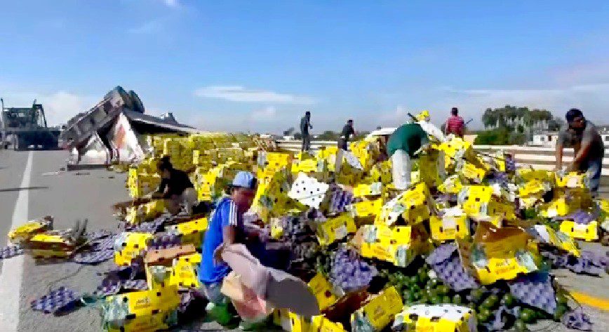 De inmediato se registro la rapiña de personas que se llevaban cajas con aguacates por lo que solicitaron la presencia de la Guardia Estatal o Nacional, así mismo personal de Tránsito y Vialidad, acudieron para conocer de lo ocurrido, y deslindar responsabilidades los daños fueron materiales y caos vehicular.