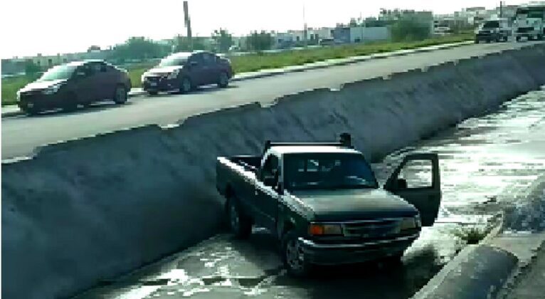 Otro accidente se registró en la colonia Fraccionamiento Puerta Grande, donde una camioneta cayera en un canal de aguas negras, y dejara leves lesiones en el ocupante u ocupantes, así como daños materiales.
