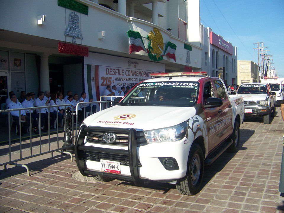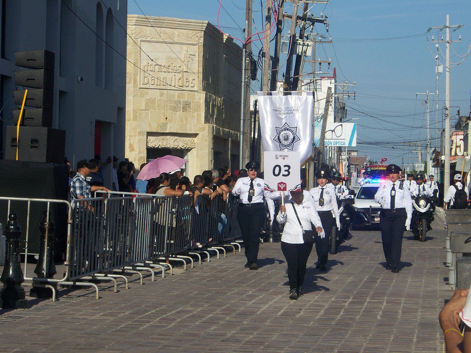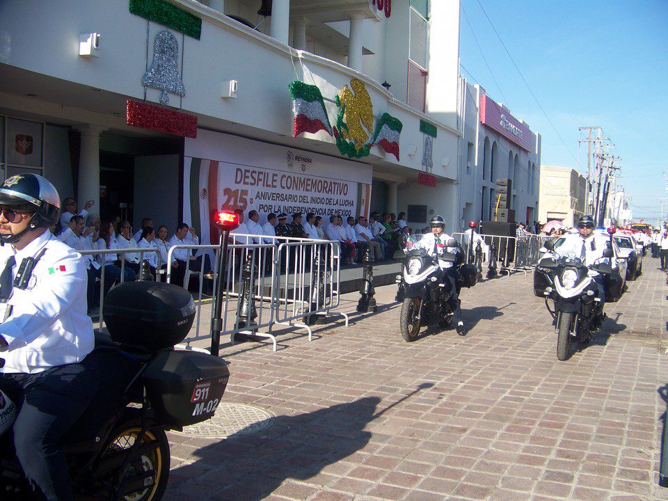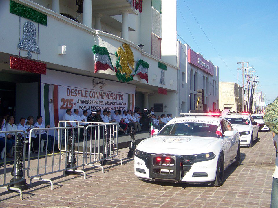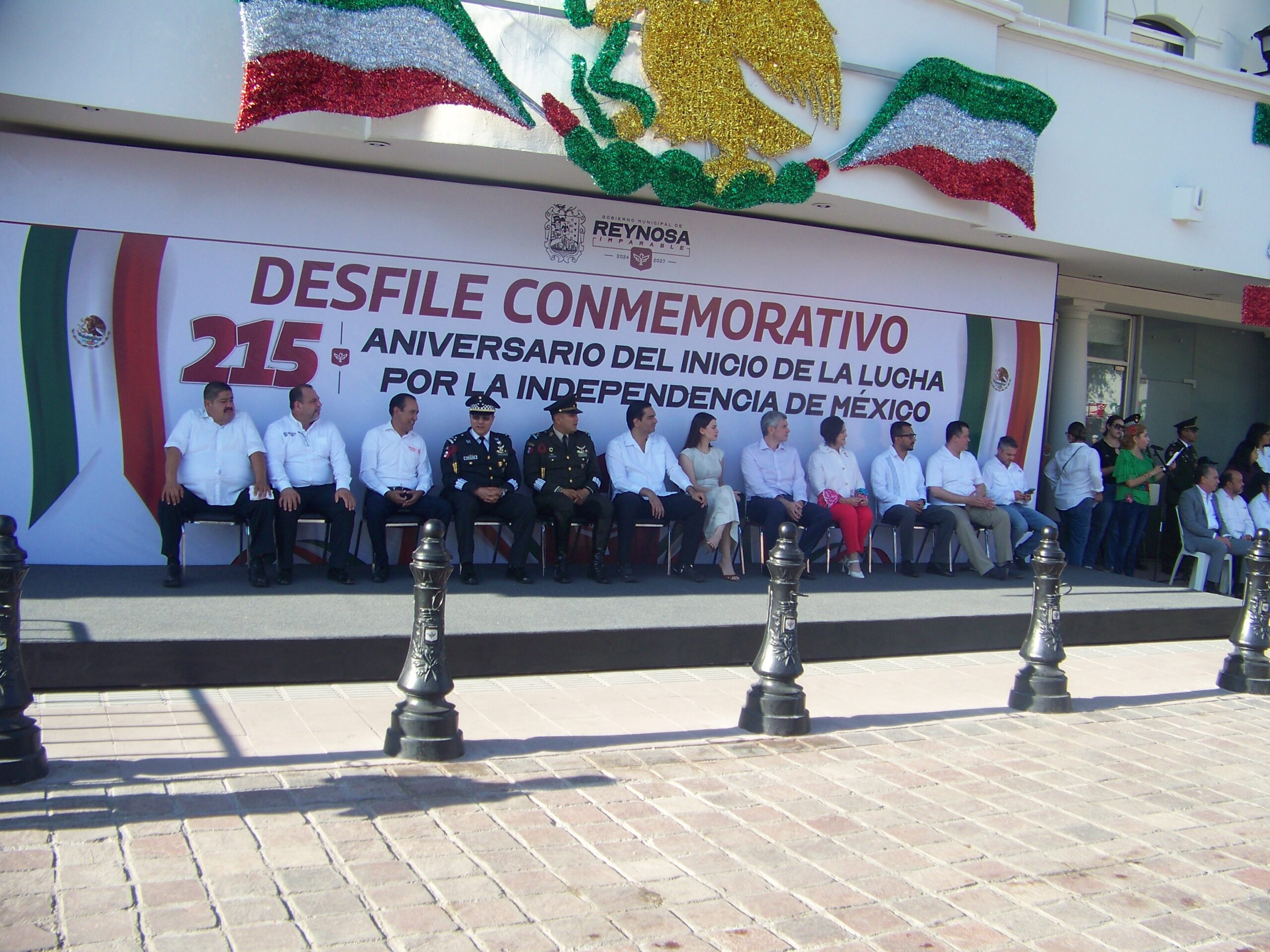 Reynosa, Tamaulipas. -Autoridades de los tres niveles de gobierno e instituciones educativas se congregaron en calles del primer cuadro de la ciudad, y encabezar el magno desfile del CCXV Aniversario de la gesta heroica de la Independencia de México.