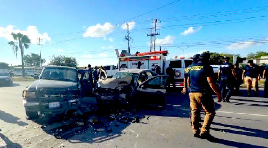Reynosa, Tamaulipas.-Aparatoso accidente vial se registro en un concurrido boulevard, donde dos unidades se impactarán, y que dejara personas lesionadas, daños materiales, y caos vial.