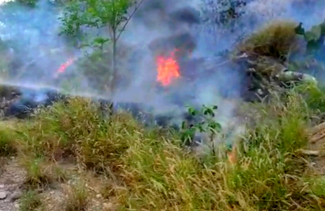 Los hechos se registraron en la colonia Terranova, donde residentes de ese sector dieran aviso a los bomberos, ya que en se estaba quemando un pastizal por lo que de inmediato atendieron el llamado.