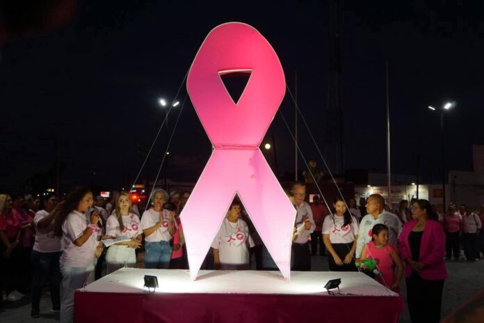 Miguel Alemán, Tamaulipas.-En la ceremonia del Encendido del Listón Rosa, que marca el inicio de las acciones del Mes de la Sensibilización contra el Cáncer de Mama, el Alcalde Biol. Ramiro Cortez Barrera reafirmó el compromiso de su Gobierno de seguir conjuntando acciones para prevenir, detectar y atender oportunamente esa enfermedad.