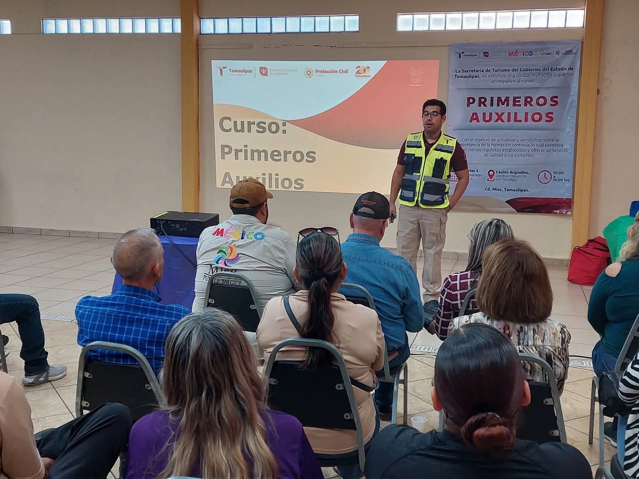 Ciudad Mier, Tamaulipas.-La Secretaría de Turismo estatal en coordinación con la Oficina de Turismo Municipal y la Presidencia Municipal de Mier, llevó a cabo un curso de Primeros Auxilios, con el objetivo de actualizar y sensibilizar sobre la importancia de la formación continua en este ámbito.