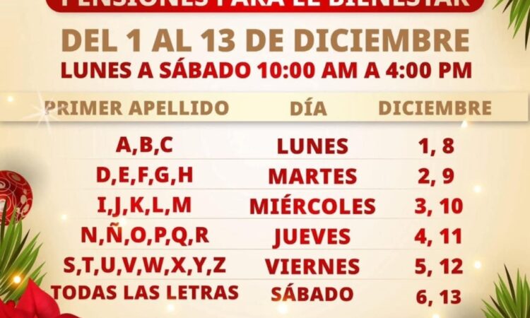 Ciudad Victoria, Tamaulipas.–La Secretaría de Bienestar federal informó que se encuentra en marcha el registro para las pensiones de Personas Adultas Mayores y de Mujeres Bienestar, apoyos sociales del Gobierno de México que encabeza la presidenta Claudia Sheinbaum, los cuales podrán recibir las y los tamaulipecos que formen parte de estos sectores de la población. El registro permanecerá abierto hasta el próximo sábado 13 de diciembre.