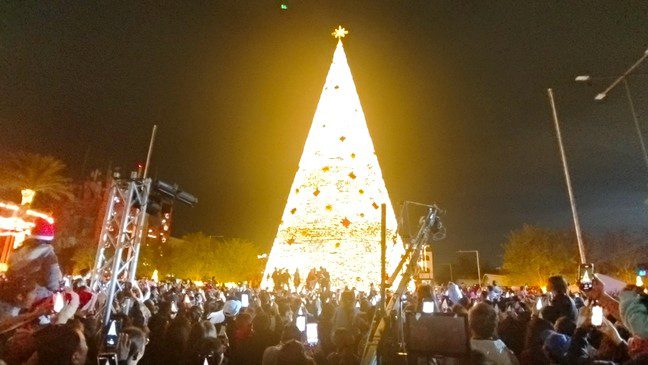 Fue desde las 16:00 horas que se iniciaron las actividades artísticas y culturales con motivo de las festividades navideñas, donde cientos de personas acudieron a la plaza principal Miguel Hidalgo, de la zona Centro para presenciar el encendido del mega árbol de navidad, y que nunca en la historia de Reynosa, un gobierno había instalado un arbolito navideño con altura de mas de 25 metros, considerado el mas alto de Tamaulipas, y comparado como el que instalan en la ciudad de Nueva York.