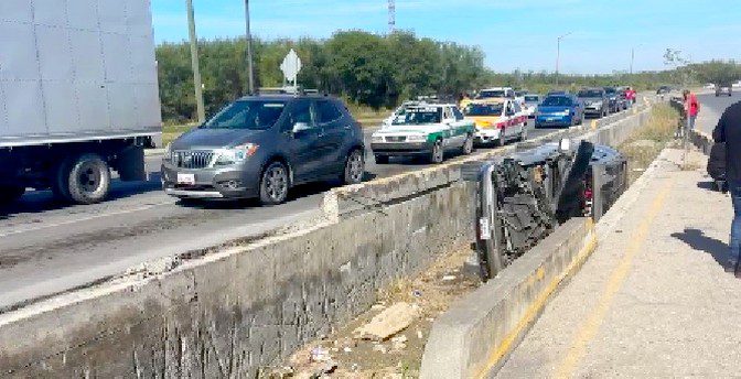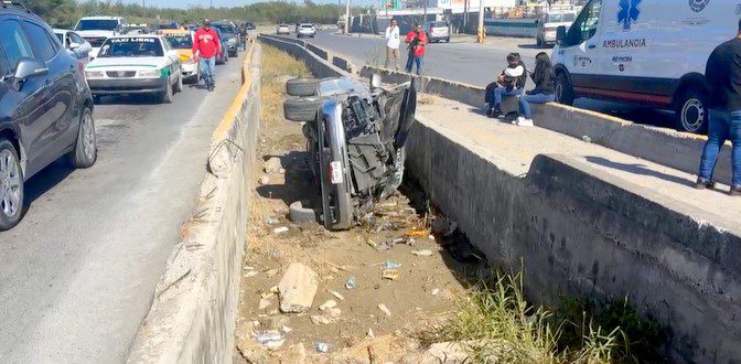 Los hechos se registraron sobre la carretera Río Bravo-Reynosa, y boulevard Oriente, a un costado de la colonia La Escondida, donde una unidad quedara volcada en el camellón central, y que se encuentran un dren desalinizador de aguas negras.