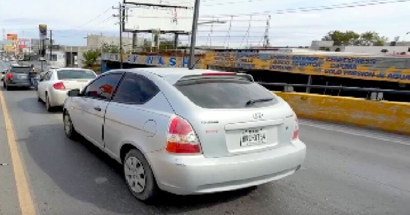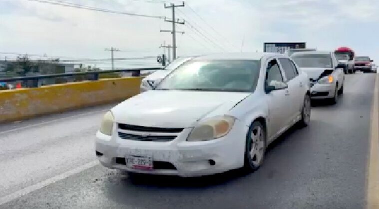 Reynosa, Tamaulipas.-Accidente vial se regsitro en un concurrido puente vehicular, donde el saldo final fuera de solo daños materiales, y caos vehicular.