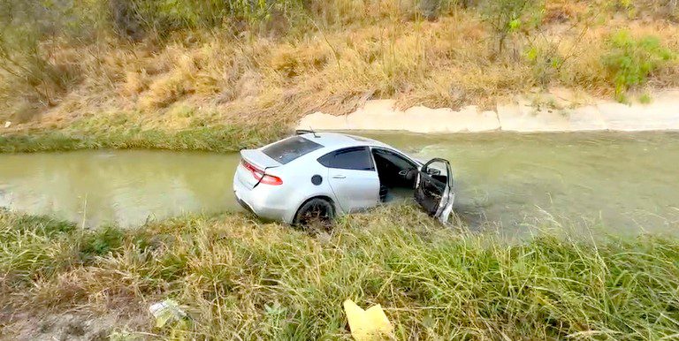 Reynosa, Tamaulipas.-Accidente vial se registro en la conflictiva carretera a la Ribereña, donde el saldo final fuera de daños materiales, y el susto que se llevaron los ocupantes tras caer a un canal de aguas negras.