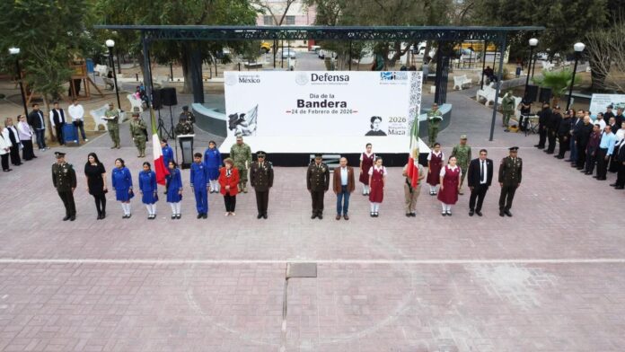 Miguel Alemán, Tamaulipas.-En la conmemoración del Día de la Bandera, el Alcalde Biol. Ramiro Cortez Barrera remarcó que el lábaro patrio “es la representación viva de nuestra historia, de nuestras luchas, de nuestros ideales y de una identidad que nos une como nación”.