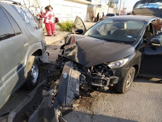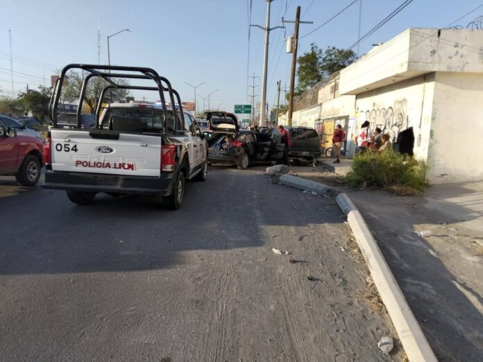 Reynosa, Tamaulipas.-Aparatoso accidente vial se registró en una apartada colonia popular, dónde el saldo fuera de personas lesionadas, daños materiales y caos vehicular.