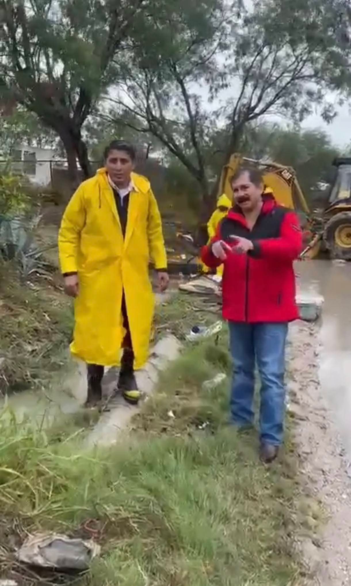 En su mensaje el presidente municipal Almaraz Maldonado informo «Andamos destapando desagües en las Margaritas y Brisas, por que se tapan con tanta basura que tiran sin pensar que luego generan que se tapen desagües coladeras alcantarillas y empiezan los inundados.